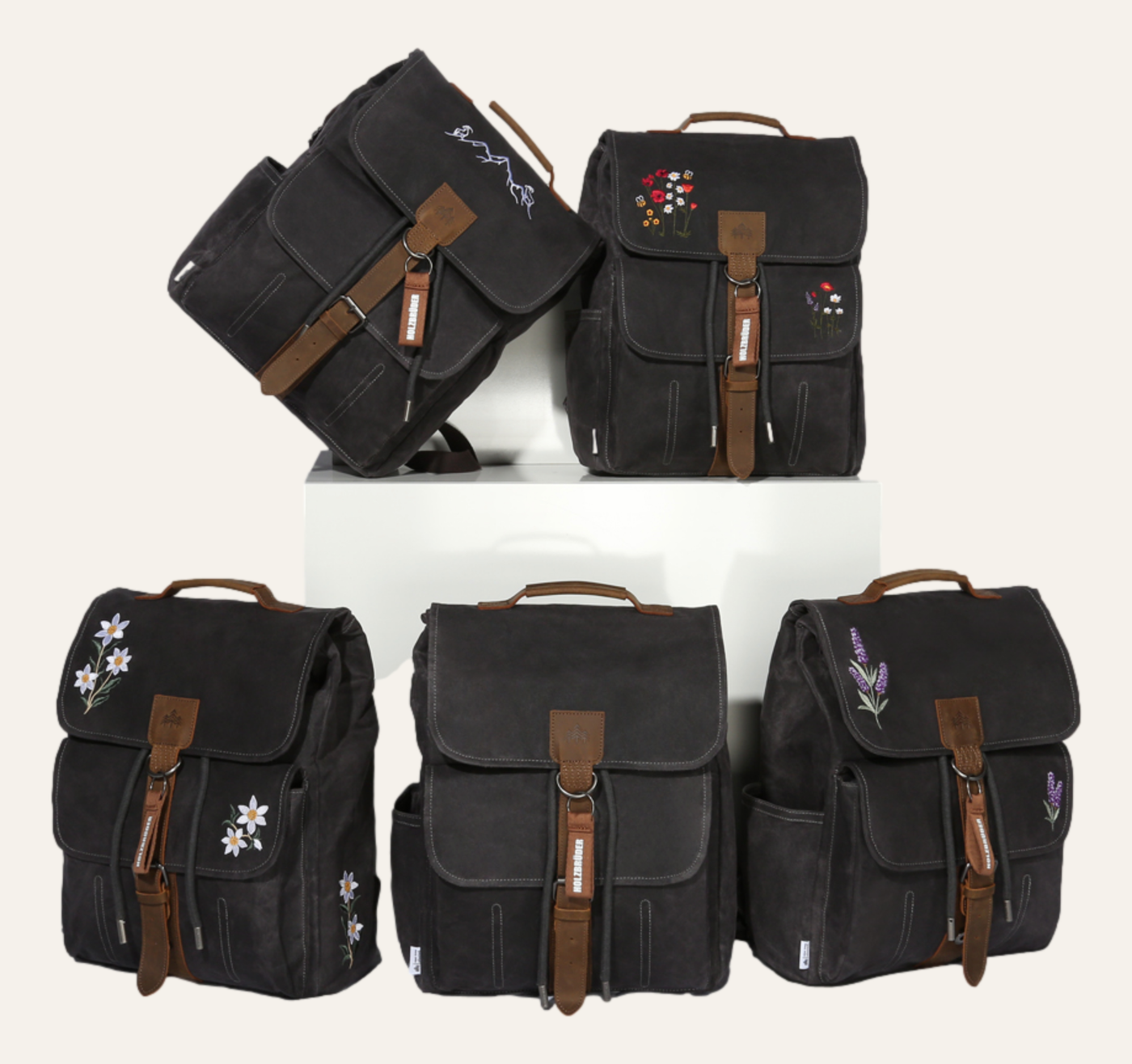 Unser Rucksack besteht aus gewachster Baumwolle – das macht ihn wasserfest und besonders robust. Mit seinem 15-Liter-Volumen bietet er genug Platz für alles, was Du unterwegs brauchst. Das gepolsterte Laptopfach (bis 15 Zoll) schützt Dein Gerät optimal. Dank der hochwertigen Stickerei und den individuellen Charms kannst Du ihn immer wieder neu gestalten und Deinen eigenen Stil einbringen. Applikationen aus echtem Leder verleihen ihm einen edlen Look. Und das Beste: Mit jedem gekauften Rucksack wird ein Baum gepflanzt – inkl. Zertifikat. Hinweis: Nicht waschmaschinengeeignet. Groben Schmutz einfach mit einem feuchten Schwamm und kaltem Wasser entfernen.